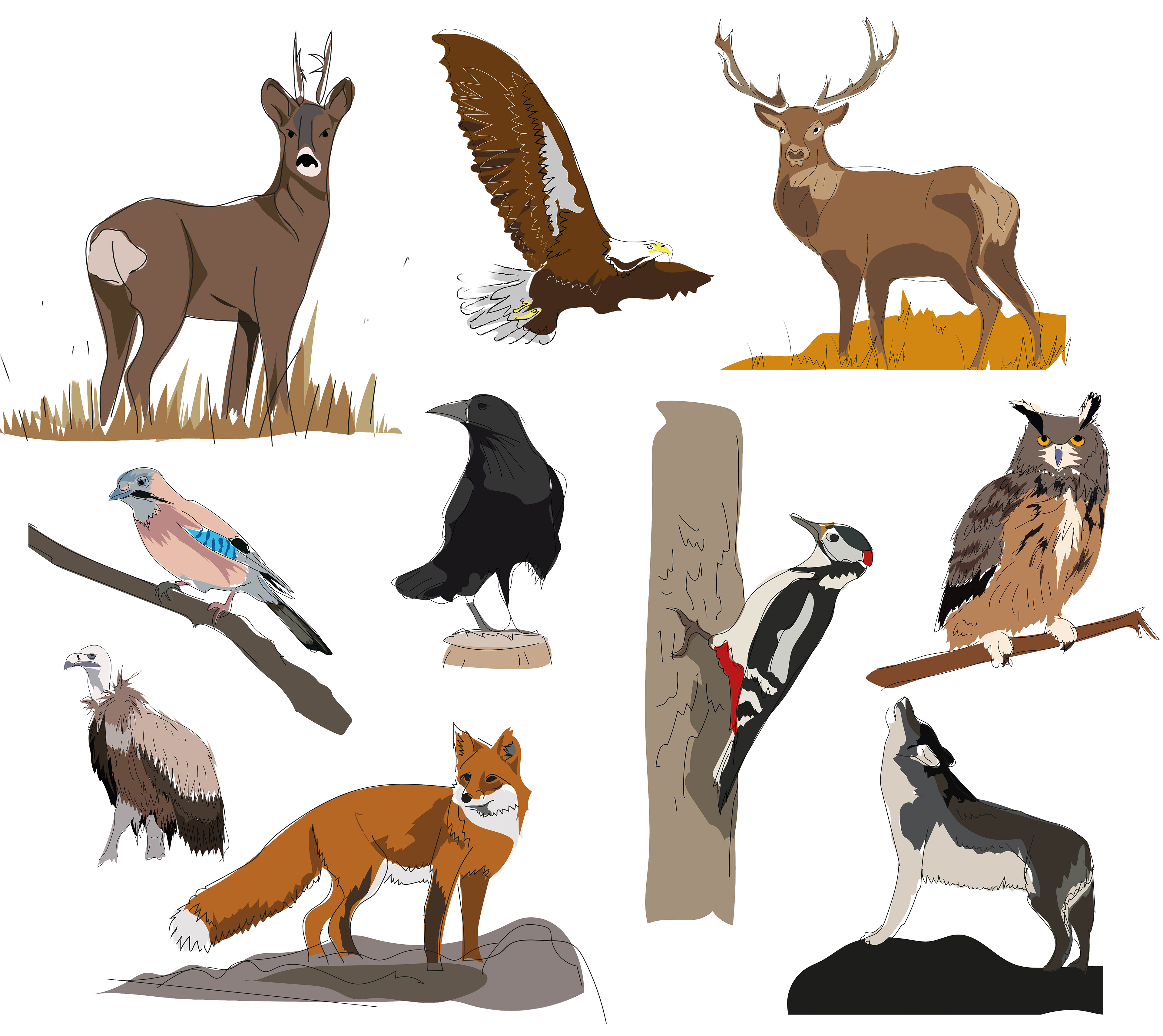 Illustrations naturalistes pour les panneaux pédagogiques pour le Chalet l'Albaréa